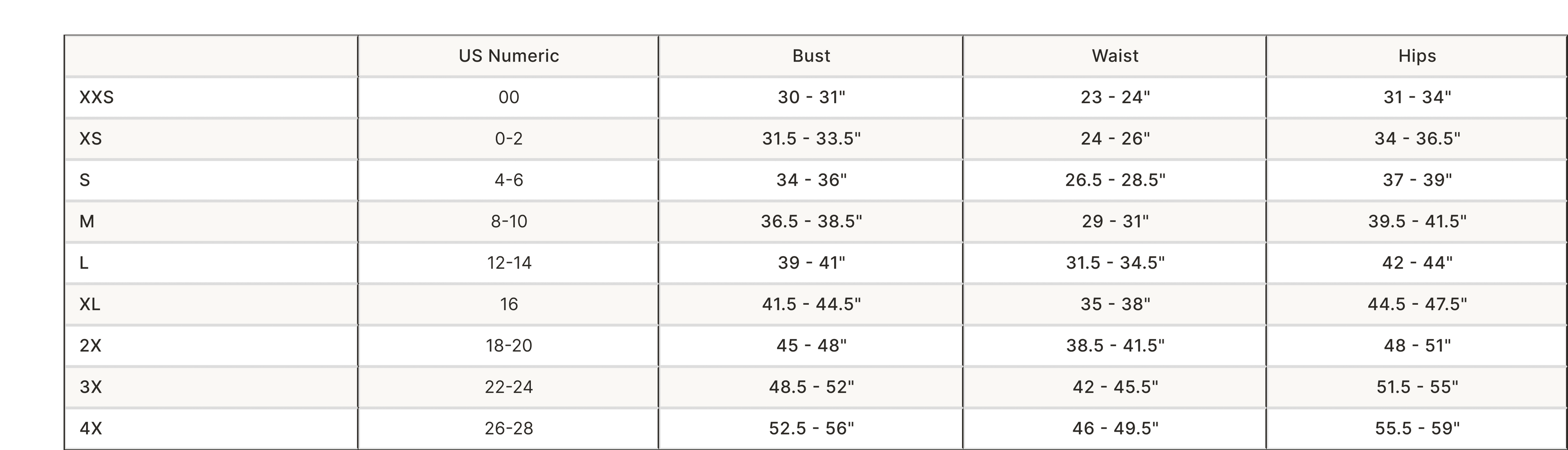 Use your band sizing to find your fit in PEEZY Ultimate Body shapewear styles, available in sizes XXS to 4X