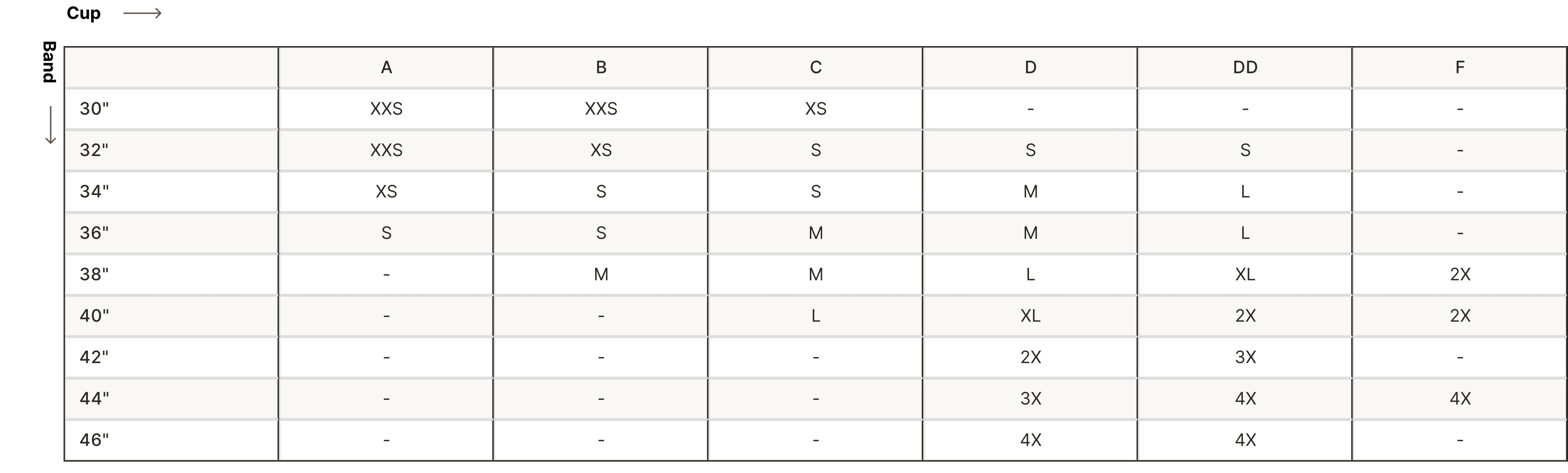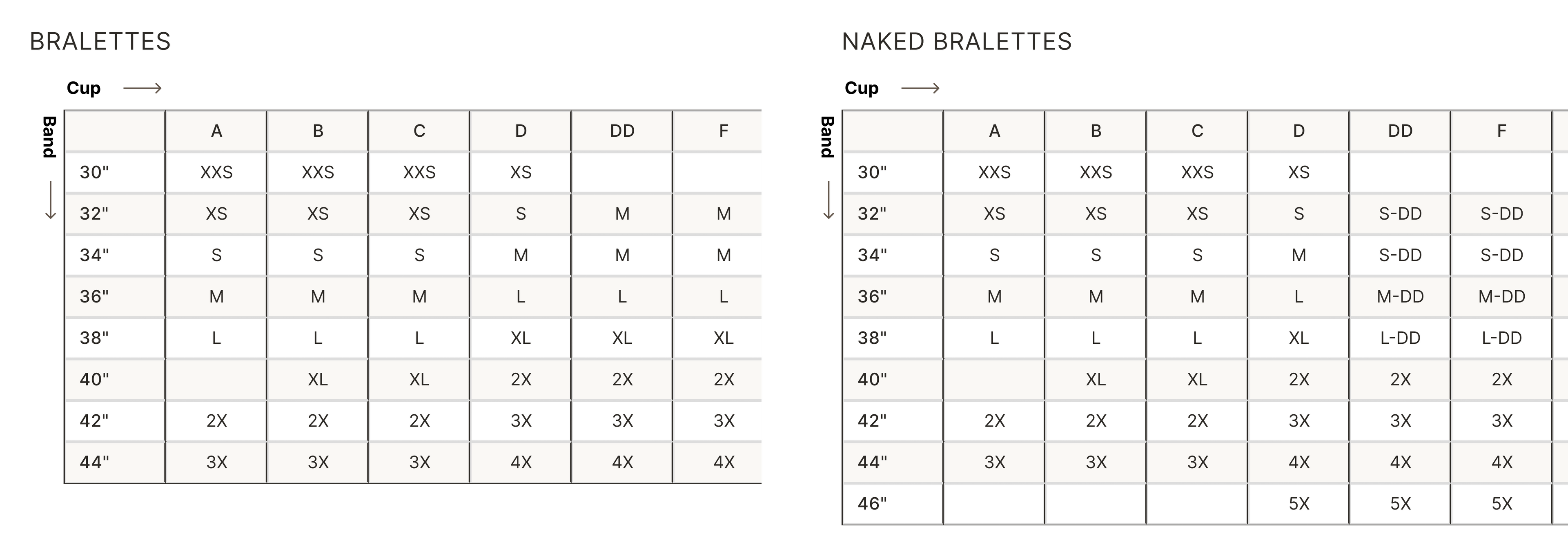 Use your band sizing to find your size in wireless bra styles, available in sizes XXS to 5X.